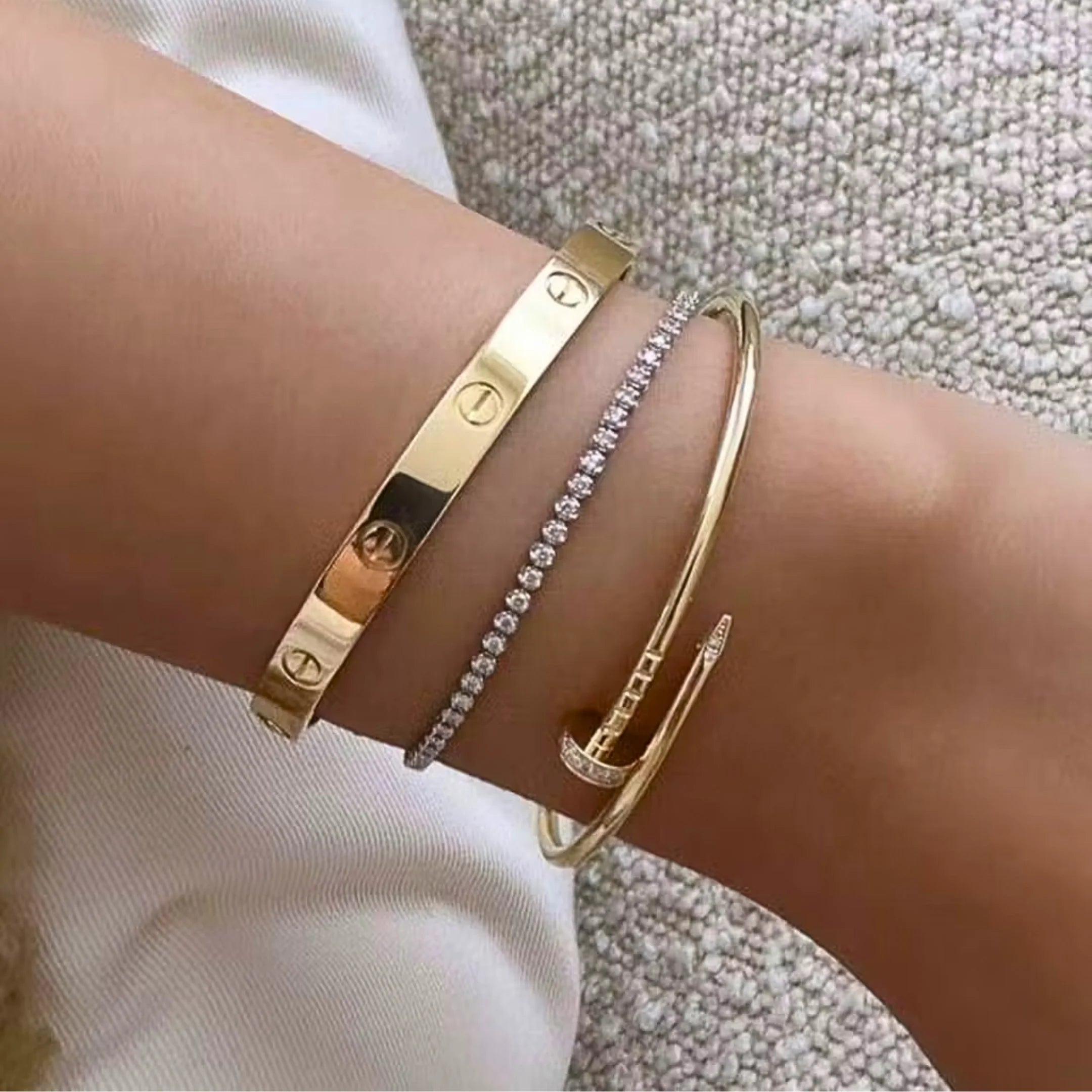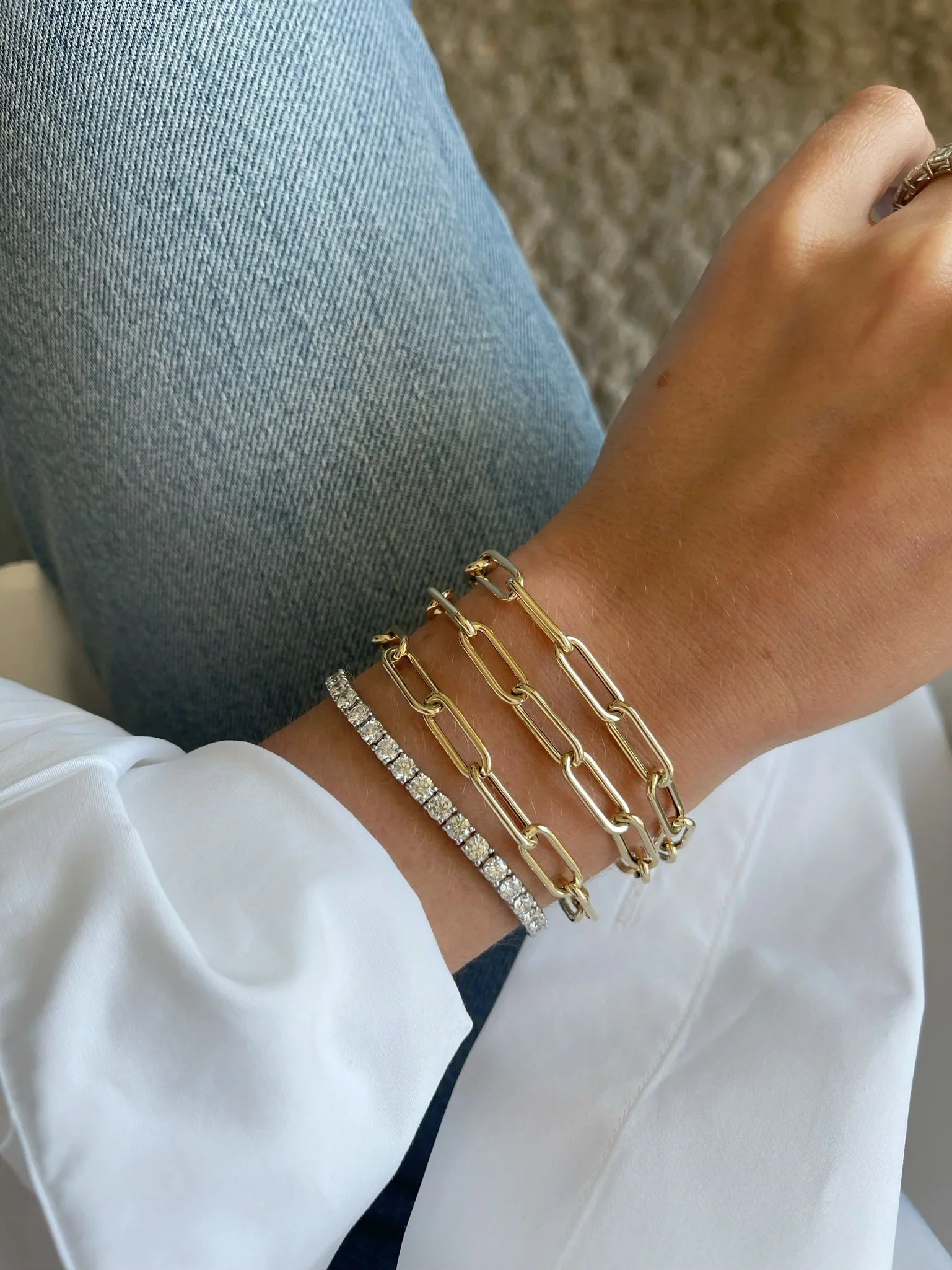 Absolutely love this stack! The gold link bracelets paired with the diamond band make the perfect everyday luxury combo
